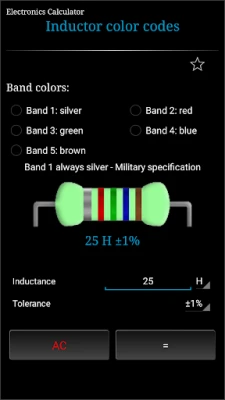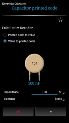 Electronics Calculator is a utility application consisting of various calculators, conversions, reference tables and basic pocket calculator.