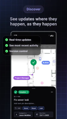 Organize Your Work By Location - drop a pin and attach photos, tasks, documents, and conversations to any location on a construction plan *or* aerial map.