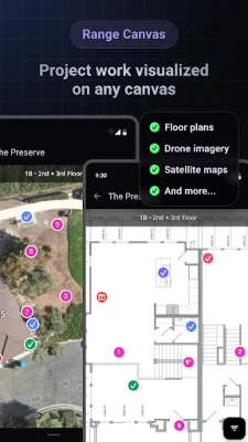 Range allows you and your team to drop pins on construction plans, aerial imagery, and more. Pins can contain photos, documents, conversations, tasks, and more.