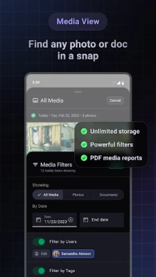 Team Photos - see all your team project photos in one location. Use filters to quickly find what you want by date, name, tags, and more.